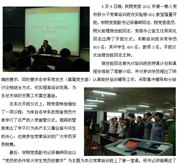 我院党委举行2011年第一期党章培训班开班仪式