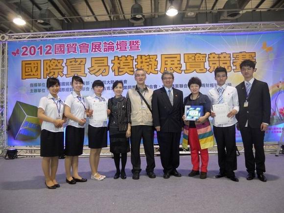 由台湾中华国际经贸研究学会、德明财经科技大学、台湾省进出口商业同业公会联合会、中国商业联合会主办的“2012年两岸校际国际贸易模拟商品展”于2012年4月21日在台北市花博公园争艳馆隆重举行。?xml:namespace>