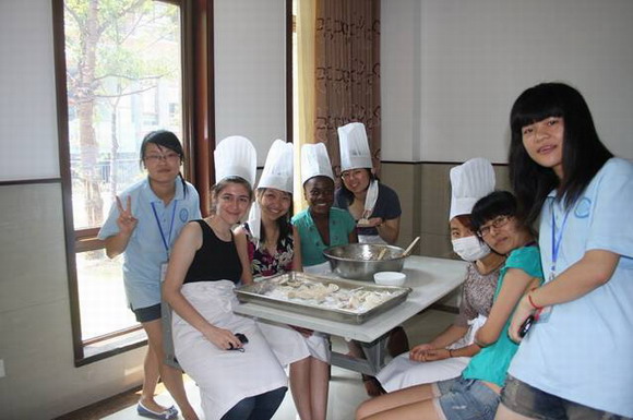 学生大使与芝加哥大学同学一起上饺子课