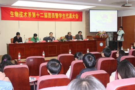 生物技术系张海松主任致开幕词,总结了系部一年来学生工作的发展。之后朱仁学副院长发表了热情洋溢地讲话,充分肯定了我系团学工作的各项成果,也结合学院评估对新一届团学干部提出了新的希望和要求。