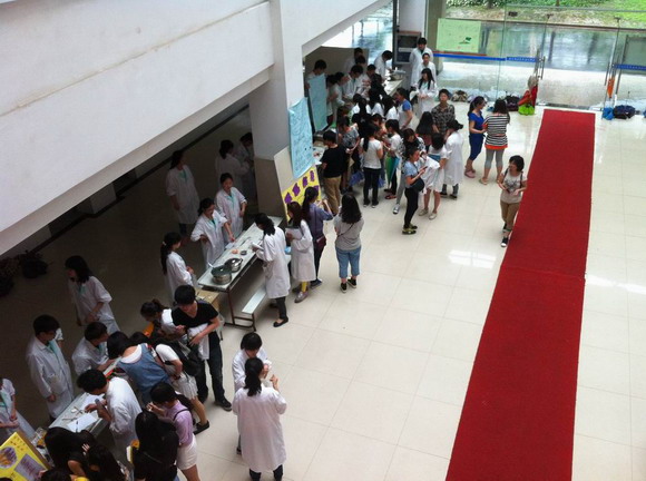 6月8日中午11点,万向学院生物技术系11级食品展在1号教学楼大厅内拉开了帷幕。凝结了老师和同学们辛勤汗水和智慧结晶的作品,是两个食品班同学的两周综合实训的成果,有五彩缤纷、营养丰富的水果汤圆;有造型独特、口感酥软的蔬菜面包;有外表晶莹剔透,“内心”五彩缤纷的水晶饺子,还有采用纯天然荷叶汁制成的荷叶面条等。每一组的产品都独具匠心,既体现了生物技术系食品班的特色,又锻炼了我们的实践能力、创新精神。