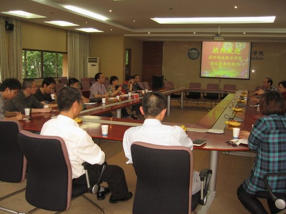 2012年5月3日下午,温州科技职业学院园林系一行7人在陈功楷书记的带领下来我院考察,与我院生物技术系教师进行了交流、研讨。