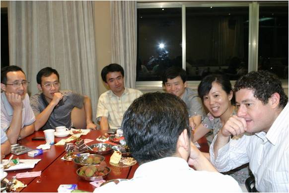 6时刚过,茶会在轻快的英文歌声中开始,首先是轻松愉快的英文抢答游戏,全场气氛活跃,有的同事还有备而来,拿出了电子辞典和平时收集的英语笔记;第二个环节是自由交流,根据晚会设定的主题,大家选择自己感兴趣的话题展开讨论,乔治和马克也分享了在中国的一些有趣经历;第三个环节Hot Seat游戏将晚会推向高潮,大家纷纷起身抢着说英语,获胜小组还得到了丰富的奖励。