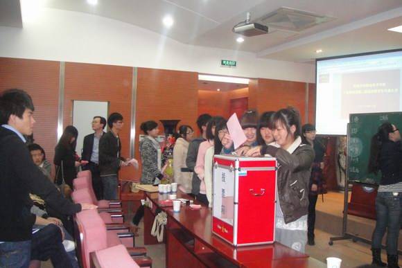 本次大会在听取了21位候选人精彩的竞职演讲后,大会审议通过了选举办法和总监票、监票、唱票、记票人员名单,与会代表以无记名投票差额选举方式选举出了新一届团总支、学生会干部。