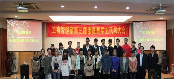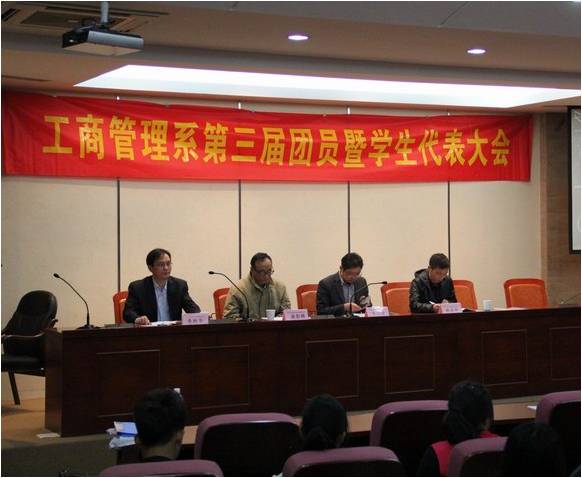 2012年11月14日晚上17:30分,工商管理系第三届团员暨学生代表大会在学院报告厅顺利召开。出席本次大会的领导和老师有:学院副院长朱仁学教授、学生发展处处长张永仟老师、工商管理系负责人柴彭颐教授、工商管理系副主任桑胜华老师、系全体辅导员和班主任老师。大会在国歌和共青团歌中开始。