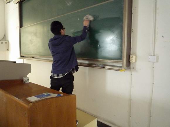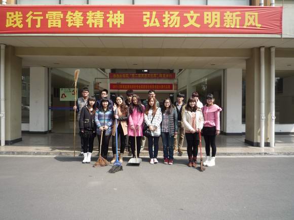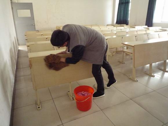 其次,3月5日中午,我们联系了学院物业管理部,号召我系全体学雷锋志愿者对我院教学楼展开了一系列清扫活动。在刚上完课的教室里,每一个角落,都有我们雷锋志愿者的身影,大家井然有序的整理着教室,有的擦黑板,有的拖地板,更有的不嫌脏累将满满的一桶桶垃圾运往垃圾箱。为了给同学们营造一个干净舒适的学习环境,志愿者们干的热火朝天,干劲十足,充分发扬了不怕苦不怕累不怕脏乐于助人的雷锋精神,为广大同学树立好榜样。号召广大同学们平时要节约水电,下课后要随时关电灯,不乱扔垃圾,创造一个良好的学习环境。