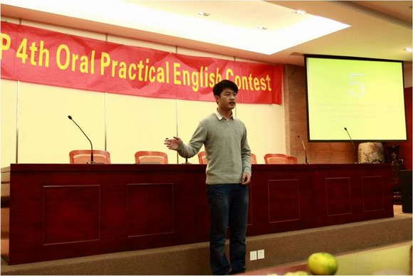 此次比赛分为专业组和非专业组。经过前段时间两轮淘汰赛,两组12位选手在40多位选手中暂露头角,进入今天的总决赛。比赛分为话题陈述和问答两个环节,首先选手对抽到的话题进行3-5分钟的陈述,然后评委针对他的发言提出问题,现场的观众也可自由提问。选手们机智诙谐的回答表现出良好的英语语言能力和沟通技巧,同学们笑声不断,掌声阵阵。