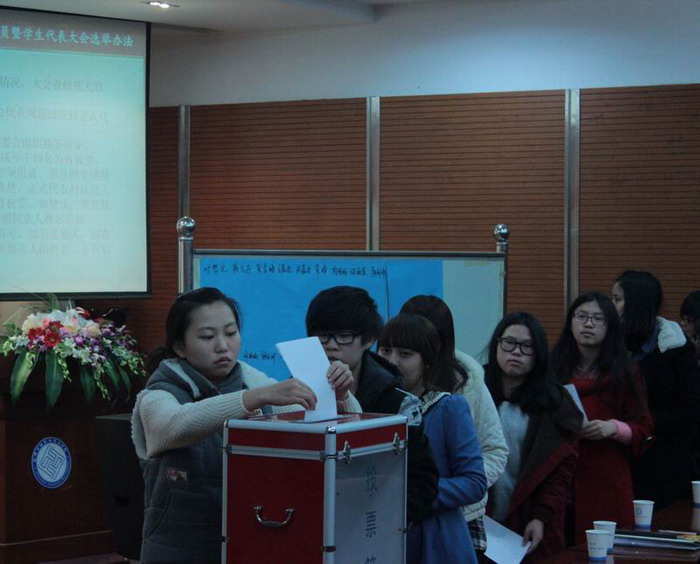 之后,大会听取并审议了分别由罗程同学和钱岗峰同学所作的《第十二届团总支、学生会工作报告》。在主持人公布选举办法、候选人、监票人名单、候选人产生情况说明等事项后,21名候选人根据抽签顺序依次上台作了竞选演讲。各位代表按照大会程序,在总监票人、监票人的监督下,对这21名候选人进行了无记名差额投票,选举生了系团总支、学生会新一届19名成员。