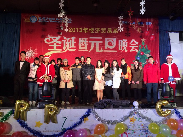 为了庆祝圣诞、元旦两个节日的到来,12月23日晚,经济贸易系“圣诞暨元旦晚会”在学院学生活动中心隆重上演。学院学生发展处处长张永仟老师,经济贸易系副主任高兰老师、李德贵老师,以及各班班主任应邀出席观看了晚会。