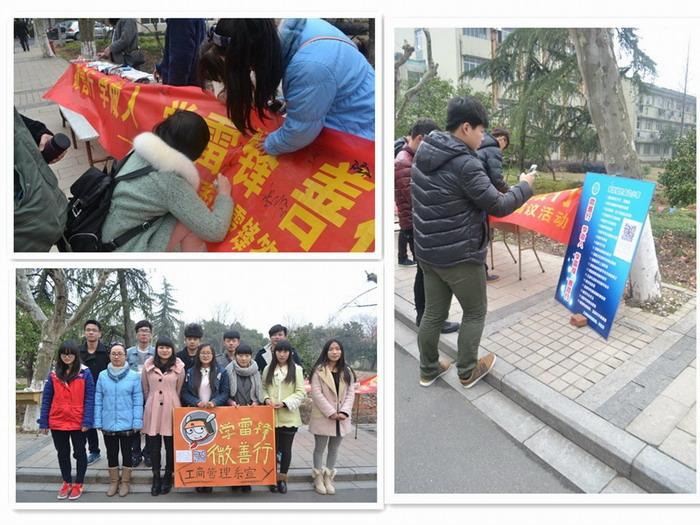 2014年3月5日,工商管理管理系团总支、学生会为响应学院“从现在做起、从身边做起、从小事做起,践行雷锋精神”的号召,以“微善行、学做人,学雷锋、善微行”为主题,在校园内开展了学雷锋系列活动,团总支、学生会全体成员参与了此次活动。