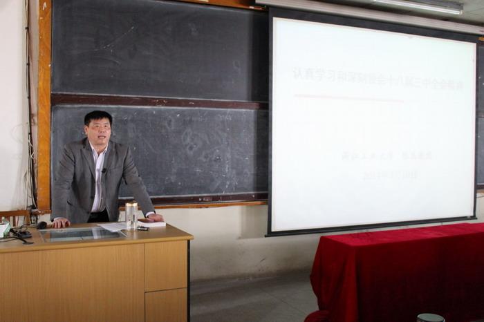 会议还邀请了浙江工业大学党委委员、副校长陈杰教授就学习贯彻“党的十八届三中全会精神” 做专题辅导报告。陈教授从十八届三中全会召开的历史背景、改革所处的历史方位和三中全会的重大意义、《决定》文本框架和主要内容等三个方面做了解读,报告语言风趣,分析透彻,让大家耳目一新,受益匪浅,对十八届三中全会精神有了一个更全面的理解和更准确的把握。