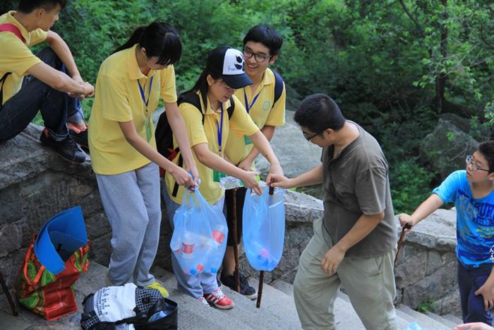 泰山上,“微善行”环保活动