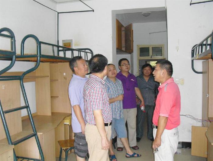 7月28日下午,学院吴延熊院长在院长助理商世能、院办主任杨志华、后勤处处长何光明等人的陪同下,到校内食堂、学生公寓等施工现场进行巡查,看望辛勤作业的工人和坚守岗位的学院教师。