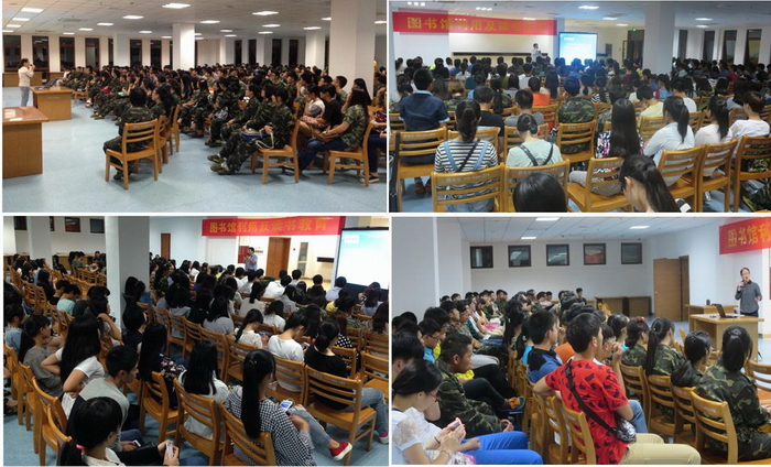 随着我院2014级新生入校、军训开始,图书馆一年一度的新生入馆教育拉开了帷幕。为使新同学尽快了解高校,尽快进入学习状态,上好“图书馆教育”第一堂课显得尤为重要。图书馆从9月19日开始分四批次,在图书馆一楼自习室对两千余名新生进行了“图书馆利用及读书教育”的宣讲和读书知识传授,课程结束后同学们参观了图书馆。