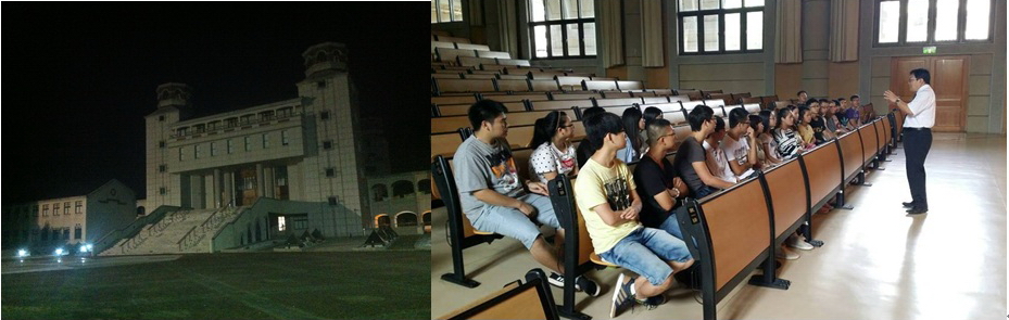 图1 夜晚的真理大学――真理堂 图2 蔡维民教授在真理堂为我们接风