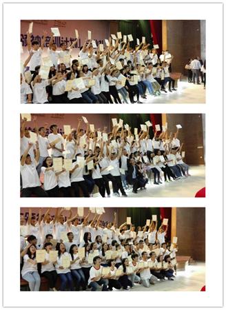 2014年10月7日18点整,新校区大报告厅迎来了第24、25、26期青年领袖培训计划共140名学员的毕业典礼。毕业典礼历时共一小时,其内容包含课程回顾、学员代表分享、学员代表邀请父母上台真诚对话、导师介绍课程背景、学生处领导致词、颁发毕业证书、学员献歌《怒放的生命》……140个学员们用他们的热情、真诚、勇敢和自信感染了现场所有的师生和家长们,让台下的观众感受到了三期学员的用心与努力。