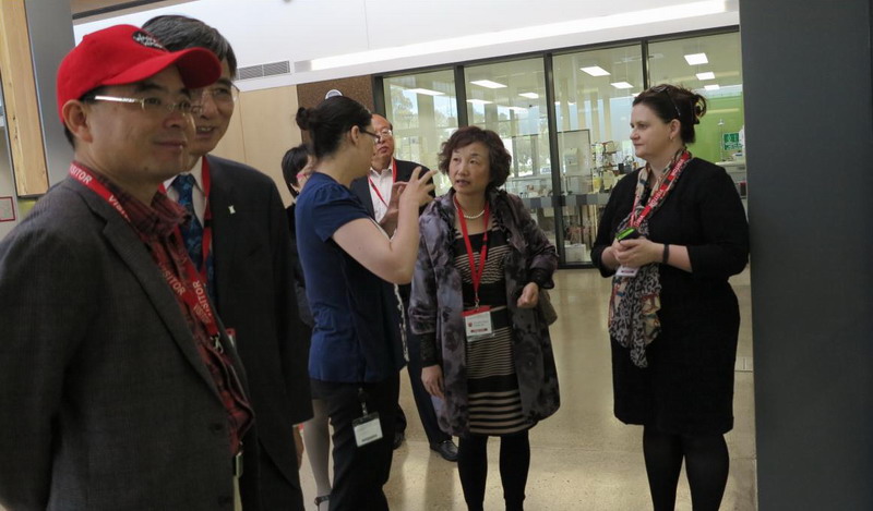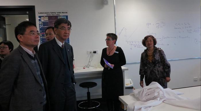 吴院长一行首先访问了查尔斯特大学,与查尔斯特大学校长Andrew Vann教授、农业和葡萄酒科学学院院长John Mawson教授以及该校跨国教育项目经理Emma Steinke女士进行了友好深入的交流,在教师短期培训、暑期选派学生赴澳学习等方面达成了合作意向。随后参观了该校的微生物实训中心,理化检测实训中心,葡萄酒酿造专业的实验基地、加工厂、实验室等,并听取了学院副院长、系主任、专任教师对食品专业的相关介绍,为两校进一步交流合作奠定了基础。