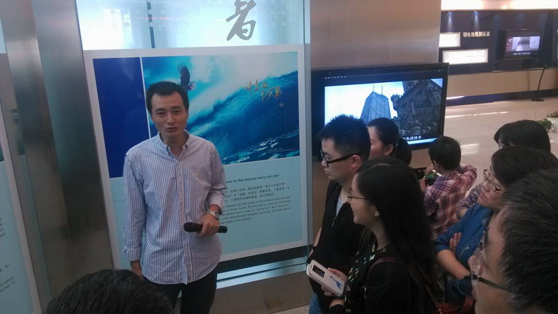 一进万向电动汽车展示厅,一辆电动公交实物展车便映入眼帘,公司党支部委员朱保恩经理从车身结构、电池续航里程、国家政策支持等方面向大家讲解了电动汽车的主要组成部件及发展情况;之后,大家参观了万向电动汽车有限公司文化墙,了解了万向集团公司的起源、发展和未来目标,并了解认识了万向汽车核心的动力总成系统、锂电池、车载信息平台。万向企业经历45年风雨,从一个铁匠铺发展成为一家以汽车零部件为主营业务的跨国集团,演绎了一个又一个中国企业界的奇迹。而万向企业“奋斗十年添个零”、“以发展民族工业为已任”的勇气和担当更使总支党员们由衷的敬佩和骄傲。