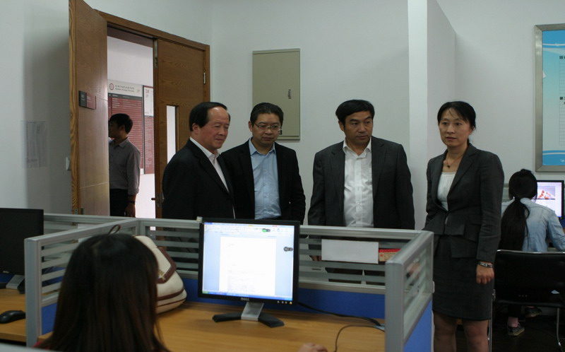 在朱仁学副院长、院办及实训中心负责人的陪同下,考察团参观了经济贸易系和工商管理系的实训室,与正在实训的同学进行互动交流。客人还饶有兴趣地参观了图书馆,对我院图书馆的硬件设施及管理模式赞叹不已。