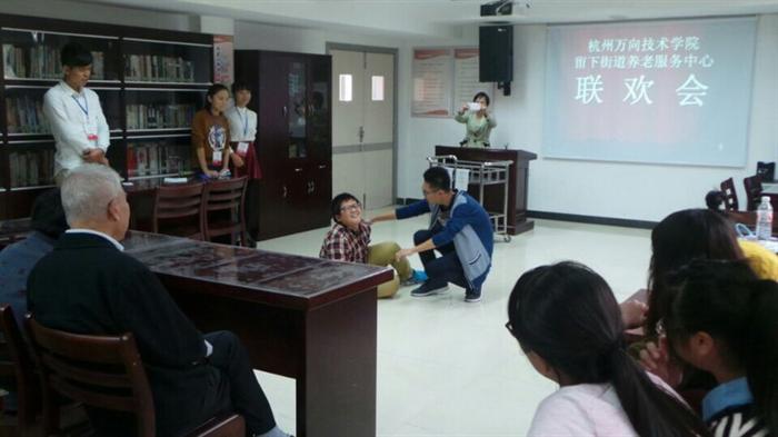 2014年10月27日下午,工商管理系志愿者服务先锋队一行16人来到西湖区留下养老服务中心,组织开展了本学期第一次慰问演出活动。本次活动的志愿者大部分来自大一新生,他们充满活力和热情,他们多才多艺,为我系志愿者服务先锋队注入了新的力量。下午1点45分志愿者们到达养老服务中心,首先热情地与爷爷奶奶们打招呼,与爷爷奶奶亲切地交流,爷爷奶奶们对于志愿者们的到来非常开心。之后,志愿者们开始为今天的节目表演做准备工作。