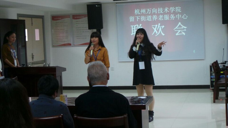2014年10月27日下午,工商管理系志愿者服务先锋队一行16人来到西湖区留下养老服务中心,组织开展了本学期第一次慰问演出活动。本次活动的志愿者大部分来自大一新生,他们充满活力和热情,他们多才多艺,为我系志愿者服务先锋队注入了新的力量。下午1点45分志愿者们到达养老服务中心,首先热情地与爷爷奶奶们打招呼,与爷爷奶奶亲切地交流,爷爷奶奶们对于志愿者们的到来非常开心。之后,志愿者们开始为今天的节目表演做准备工作。