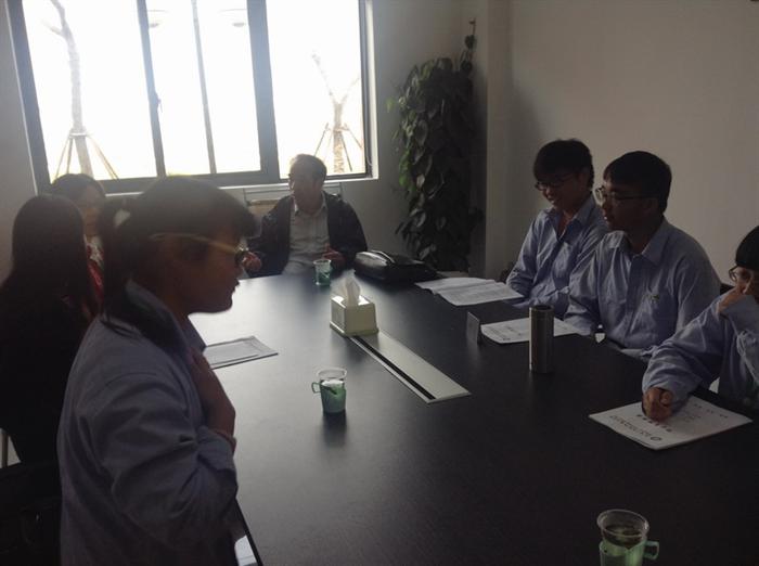 张海松主任一行每到一处实习基地时首先就是召集所有顶岗实习的同学召开座谈会,由于同学们都是放弃暑假休息7月7日就开始进行顶岗实习,4个月的实习时间下来有很多的心得体会可以交流,座谈会师生交流气氛非常热烈。张主任首先肯定了同学们坚守岗位,吃苦耐劳的精神,并在详细询问了同学们的实习工作和生活情况后,以自己的亲身经历来激发同学们的精益求精的精神,鼓励学生要在实践中巩固所学的理论知识,将书本中的知识真正转化为自己的技能。最后语重心长的叮嘱同学们注意交通及生产安全。