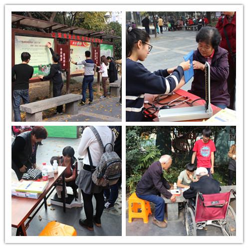 在古荡东社区,同学们首先帮助社区打扫了社区活动中心,随后分成两组,一组为社区居民测量血压、测量BMI,另一组陪社区里的老人活动。同学们分工协作,配合默契,获得了极佳的活动效果。在离开时,社区的老人们及工作人员纷纷表示希望他们下次能再来。