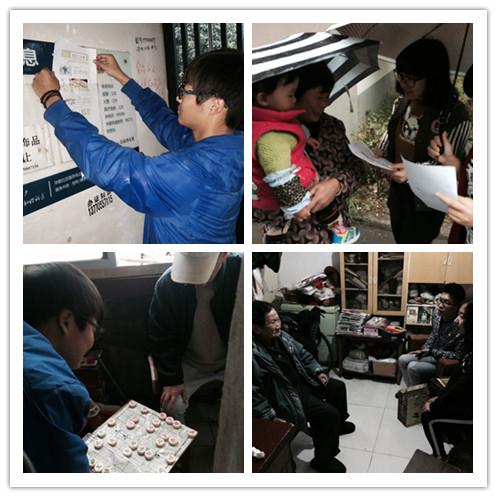 在留下西苑,同学们先冒着雨在社区里分发食品安全知识的宣传单,随后前往孤寡老人家里慰问。与孤寡老人的聊天使同学们颇有感触,大家对老人们的遭遇深表同情和难过,同时表示以后还要多参与这样的活动,关爱弱势群体。