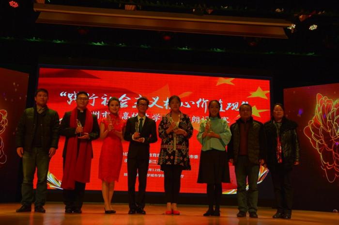 朗诵会现场诗意盎然,精彩纷呈,来自杭州师范大学、杭州师范大学钱江学院、浙江大学城市学院等七所市属高校,共14个参赛作品同台竞技。本次比赛作品主题均围绕社会主义核心价值观“富强、民主、文明、和谐、自由、平等、公正、法治、爱国、敬业、诚信、友善”展开。选手们以十二个词中的某一个主题进行诗歌创作、编写并朗诵。