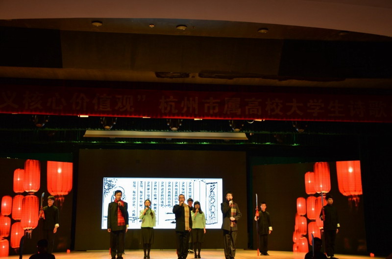 为深入学习贯彻党的十八大精神,培育和践行社会主义核心价值观,深化对中国梦内涵的理解,大力弘扬中华民族精神。12月4日晚,由杭州市教育局、共青团杭州市委联合举办的“践行社会主义核心价值观”杭州市属高校大学生诗歌朗诵比赛在浙江大学城市学院图信报告厅顺利举行。