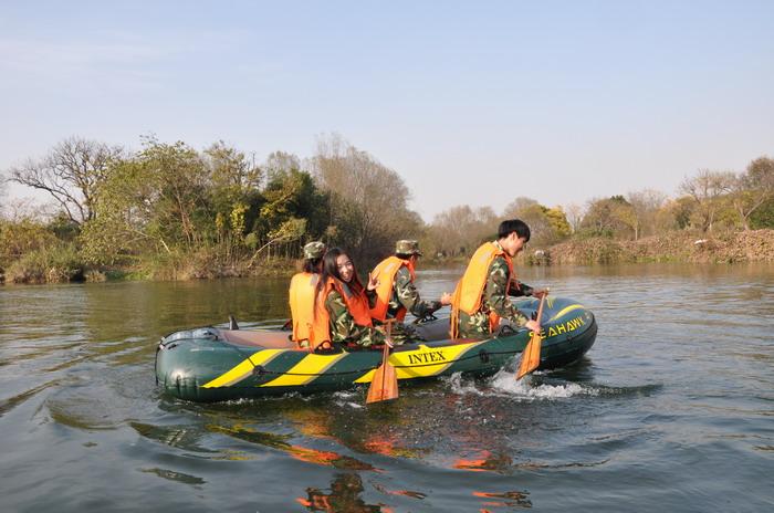 在四位老师的带领下,87名学生徒步前行由周家村入口进入西溪湿地,进而换乘游船前往西溪拓展园。活动开始,大家换上迷彩套装,在教官的指导下,分成6组,进行了热身破冰、团队建设和团队展示。之后分别进行了“真人CS野战”、“多人两足”和“皮划艇接力赛”等团队训练项目。通过这些项目,激发了大家的责任感、自信心、独立能力、领导能力,展现了团队的力量以及面对困难和挑战时的应变能力,使同学们更加有效地进行沟通。提高了整体战斗力以及自我认知、创新思维、人际合作、管理水平等能力,营造了一个更为和谐的团队。