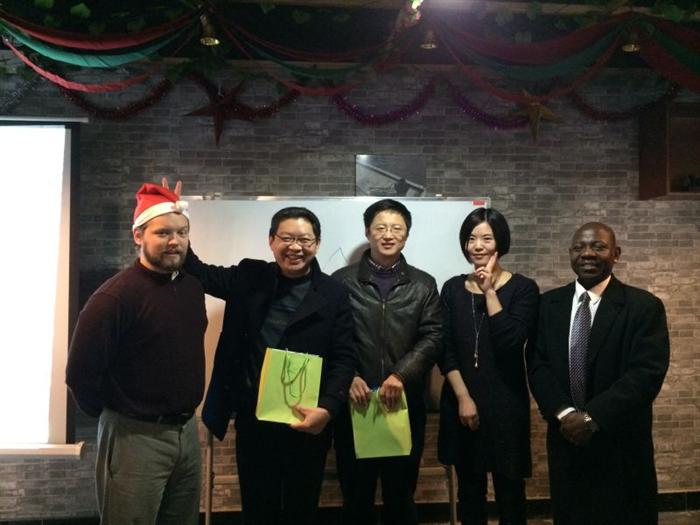 12月22日,在西方传统节日――圣诞节来临之际,通识教育系在新校区6号楼酒吧实训基地为外籍教师举行圣诞联欢活动。学院副院长朱仁学、院长助理商世能、通识教育系主任杨柳、工商管理系主任章建新、经济贸易系主任高兰、董事会秘书金佳、学生处副处长徐佩兰、通识教育系副主任李德贵、交流合作处丁浙涛老师和通识教育系公共外语团队全体中外英语教师参加了联欢活动。