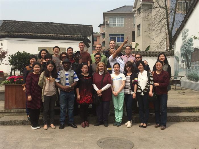 外教和中教一起参观了西湖区转塘街道艺术小镇外桐坞村,每位外教有两位中教陪同讲解。大家首先在国学礼堂学习了中国的传统教育和师德准则,然后参观感受中国的“枫丹白露”――中国美术学院的师生和外桐坞茶村特有景观相融合的绘画、摄影工作室。最后体验了茶园、年糕坊等中国乡土文化和自然风景。外教趣味盎然,中教耐心解答,融洽的文化交流之旅处处充满欢声笑语。