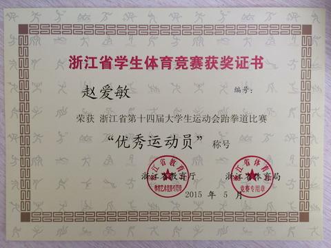 2015年5月7日-10日,浙江省第十四届大学生运动会跆拳道比赛在温州职业技术学院隆重举行,本次比赛由浙江省教育厅、浙江省体育局主办,浙江省大学生体育协会武术分会协办,有24所高职院校的300多位运动员参与8个项目的激烈角逐。