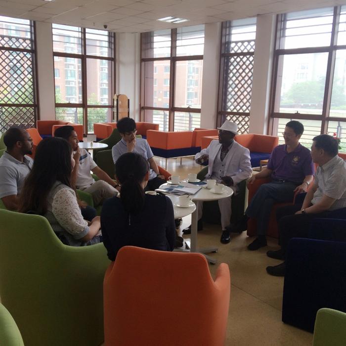 上午9:00,武汉商学院考察组一行在学院图书馆与我院英语教学团队进行了热烈的交流。首先,李德贵副主任带领考察组参观了外籍教师办公室和建设中的英语自主学习中心,并就我院英语教学的特色定位、团队建设、模式改革、外教管理、英语竞赛等方面向来宾做了详细介绍。接着,外教Nobel和David分别向来宾分享了他们在英语教学过程中的经验和方法,Nobel在英语自主学习中心演示了英语自主学习平台的使用,David在教室现身说法,介绍了如何组织英语课堂教学活动。最后,韩晓华老师介绍了我院英语分层教学的方法和经验。