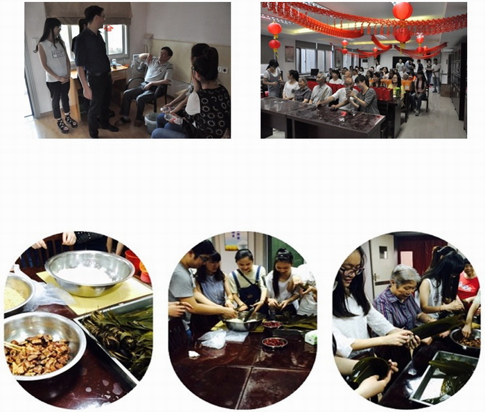 碧绿的艾叶里,包裹着幽香的粽子,幽香的粽子里,有丝丝的祝福。每逢端午粽子是不可缺少的,所以志愿者们带着早就准备好的材料亲手给爷爷奶奶们包粽子,更是有热情的爷爷奶奶也加入了制作的队伍当中,放糯米、夹配料、裹艾叶,在传统佳节的热闹氛围中,传递着“家”的温馨和“爱”的奉献。