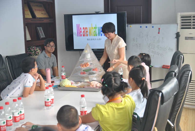 张倩教授通过生动的小故事,图片讲解,问答互动等方式为小记者们讲解合理膳食的重要性和教导如何才能吃的健康,以及如何掌握膳食搭配技巧等。以膳食宝塔为引导,教导小记者们如何合理选择和搭配食物,预防营养不良症。小记者们认真听讲,提出许多他们感兴趣的话题,课堂气氛非常活跃。