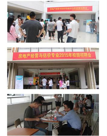 2015年6月29日下午13:30,房地产经营与估价专业2015年校园招聘会在一号校区第一教学楼大厅如期举行。此次招聘会共邀请房地产相关单位包括盛世管家,智联房产,纳德物业,绿城置换在内共29家企业。最终到场有25家单位。房地产经营与估价131班和132班共90名同学带着自己精心准备的简历参与了面试与招聘。
