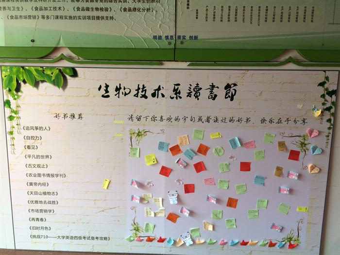 本次读书节旨在激发同学们的读书热情,传承校园文化,建设书香校园,享受悦读人生,形式多样且新颖的活动也收到了良好的效果。今后生物技术系团总支将继续致力于打造更多受益面广、富有创新精神的活动,丰富校园文化,提升学生素质。