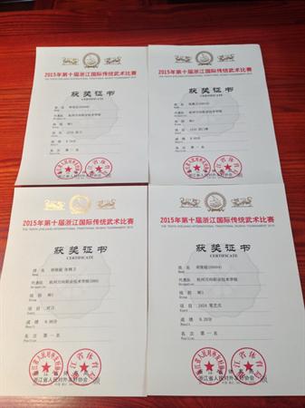 2015年7月12日,我院非遗基地“十八般武艺班”在通识教育系老师殷锐、教练胡金火的带领下,参加了2015年第十届浙江国际传统武术比赛,并勇夺5金12银,充分展现了我院非遗基地的教学成果。