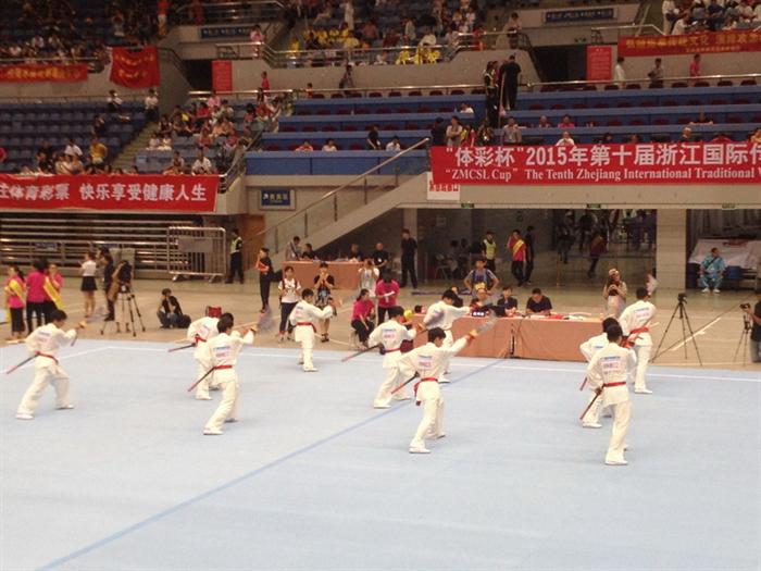 “体彩杯”浙江省第十届国际传统武术比赛由浙江省体育总局和浙江省人民对外友好协会主办,是浙江省最为知名的武术赛事。据悉本次比赛共有来自美国、法国、日本、俄罗斯、保加利亚等13个国家的近5700名中外选手参赛。大赛于7月11日-12日在黄龙体育馆举行,我院10名选手参加6个项目的角逐。其中张精卫、胡俊超的“对刀”、钟昌达的“苏刀”、胡俊超的“笔艺爪”、张精卫的“四门拳”共获得5枚金牌(“对刀”2枚);卢华涛的“三尖两刃刀”、方承健的“方天戟”获得2枚银牌;“集体龙刀”(张精卫、胡俊超、卢华涛、陈佳杰、方承健、钟昌达、何周平、何韦刚、梁焱斌、何海生)获得10枚银牌。