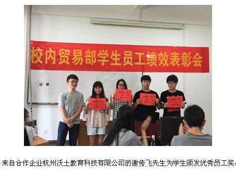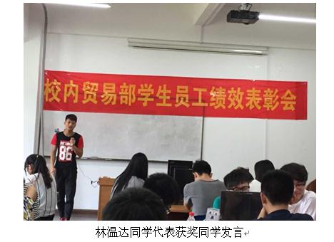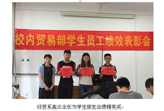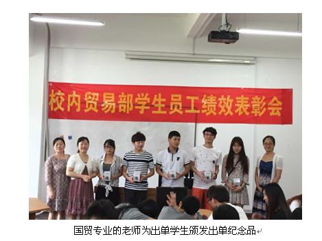校内贸易部是国贸专业学生进行真实业务操作的场所,近几届学生在贸易部都有不错的业绩表现。为了进一步激励学生提升操作能力和业绩水平,7月13日上午国贸专业在新校区3224实训室举行了首次校内易部学生员工绩效表彰会,对上半年贸易部中表现出色的同学进行了表彰奖励。