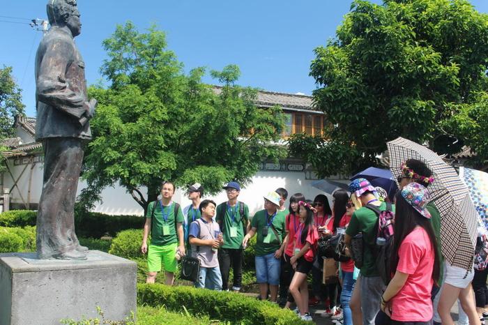 和顺古镇行程结束后,随即进行总结会议。在师生长达两个小时的激烈讨论下,我们对和顺有了更加深刻的认识:和顺图书馆成立、发展及相关事迹,深深地印入我们的脑海;腾冲以梁金山为首的富商对抗战的支持不得不让我们肃然起敬;艾思奇虽出身显赫,但为人正直且作风优良,更是在中国马克思主义理论传播过程中做出了大的贡献。会议结束后,我们对三天的行程有了一个初步的认知:我们团队自出发以来,团队意识高,时间观念强,但也存在人文历史知识积累不足的硬伤。在接下来几天时间内我们将更加用心挖掘抗战的相关历史及文化,感受70年前中华民族的深重苦难和先辈们前赴后继、浴血征战的不屈精神,以不负“万向教育基金”此行之初衷。