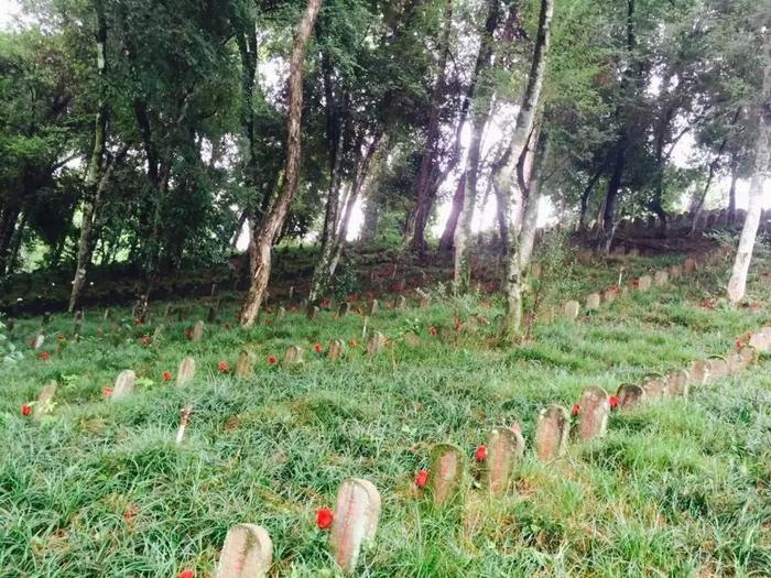 最后,师生来到忠烈祠后呈圆锥形的31米之高的“小团山”墓地,“埋骨何须桑梓地,人生无处不青山”。墓园自上而下整齐地排列着3346块小石碑,墓碑虽不高,但每一个墓碑都有一股势不可挡的浩然正气,上面刻有阵亡将士的姓名与军衔,下面安葬着烈士的骨灰,它代表着在收复腾冲城攻坚战中牺牲的3000多名将士。导游向师生解说:“他们大都无妻无子,为了国家独立和民族尊严,流尽最后一滴鲜血,倒在血泊里,但其大无畏精神却始终屹立,历史会铭记他们――可歌可泣的抗日英雄。”