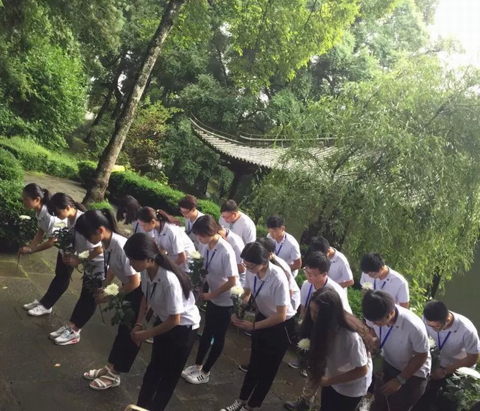 7月28日,万向教育基金项目之“滇西抗战远征行”的师生一行23人怀揣敬仰与谦卑之情,冒雨抵达国殇墓园。在墓园内,全体师生向抗战英烈、盟军阵亡将士敬献鲜花、三鞠躬默哀。