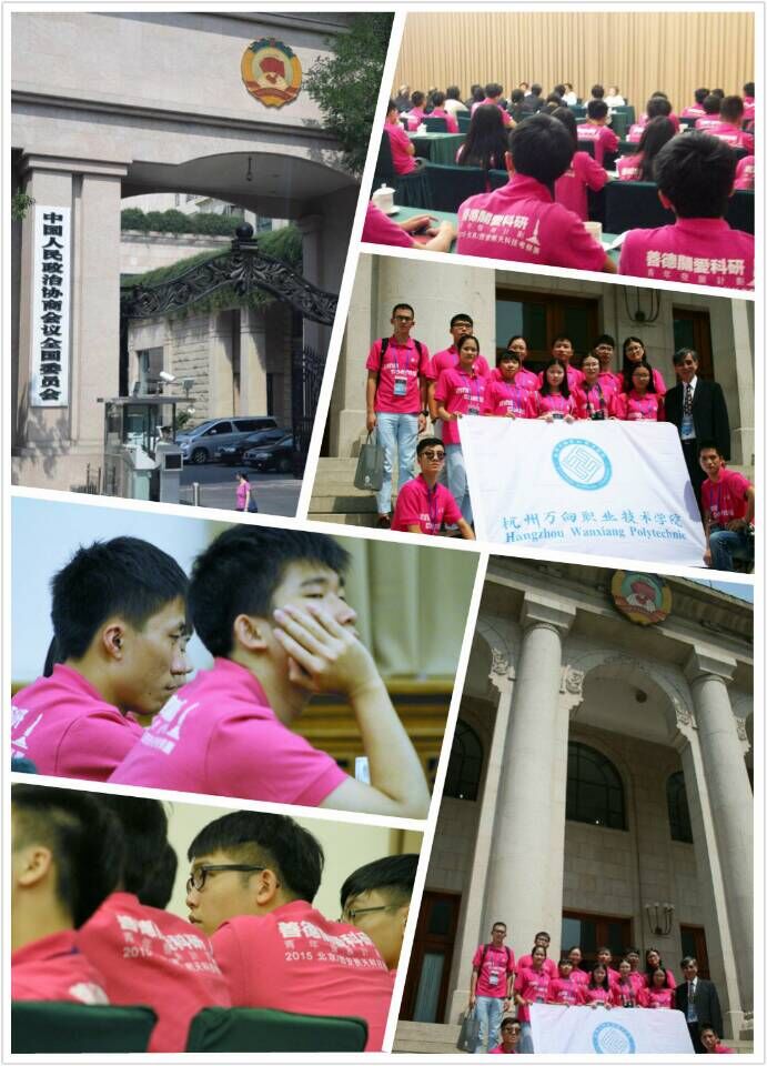 考察团师生参观全国政协礼堂,有幸受到全国政协常委、考察团名誉团长伍淑清博士和全国政协港澳台侨委会主任杨崇江先生的亲切接见,并在中国人才培养,政协发展历史,港人治港等问题进行了深刻的阐述解答。对团员们提出了三个历史的要求:1)主人翁意识。2)责任意识。3)创新意识。明确科技兴国,人才强国的战略,在结束后与大家合影留念。