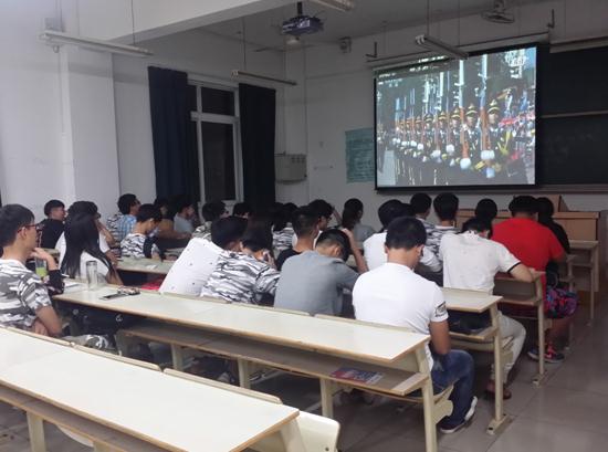 今年9月3日,中国抗日战争胜利纪念日暨世界反法西斯战争胜利纪念日,首都北京举行了盛大的阅兵式,全国人民欢欣鼓舞,以作为一名中国人而自豪。在新生军训期间,正是开展国防教育的良好契机,经济贸易系在9月23日晚18:30分开展了国防教育暨纪念抗战胜利70周年主题班会活动。班主任朋辈组织新生重新观看阅兵式。重温那激动人心的时刻。观看完阅兵式后,新生积极发言,决心发扬不怕吃苦的精神顺利完成军训任务,同时把这种精神带到今后的学习生活中去。