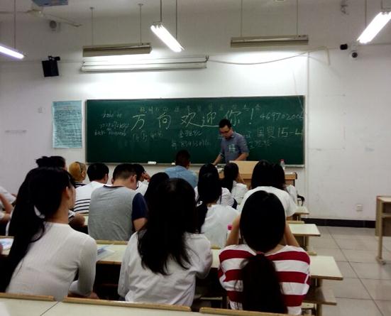 9月20日晚18:30,从经贸系新生自修室中传来了阵阵掌声,他们对班主任和朋辈们充满新奇和敬意。朋辈们根据前段时间准备好的新生班会方案。利用ppt及一些小游戏,逐渐调动了大家的兴趣,大家开始争先恐后的上台自我介绍,班主任也给新生介绍了学校,学系的基本情况,以及新生在军训,以后的学习生活中的注意事项等。新生的稚嫩可爱与班主任、朋辈的耐心有爱成了第一天晚上班主任见面会的主要画面。