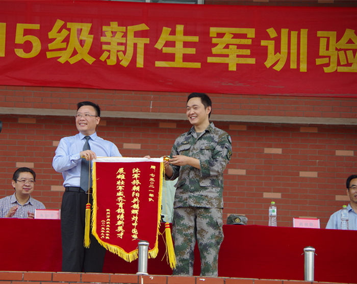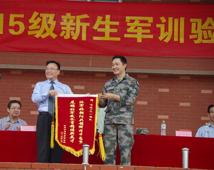 阅兵分列式结束,院长助理商世能宣读军训先进集体、先进个人表彰文件,主席台领导为获奖集体与个人颁发了荣誉证书,为他们在军训中的优异表现给予肯定。