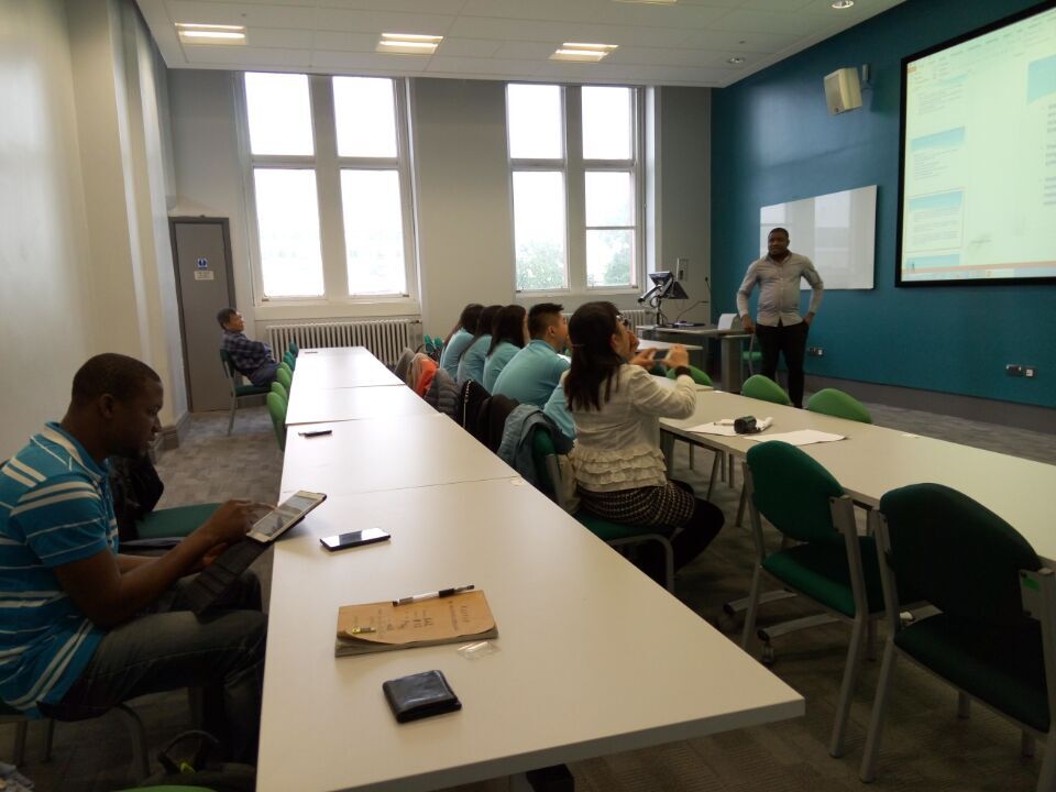 林教授热情的下楼迎接我们,并领我们走进了Peel Building的一个教室,开始了我们来到University of Salford的第一次课。